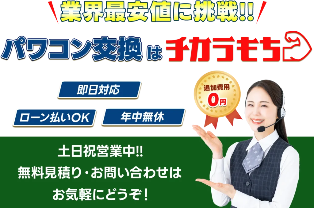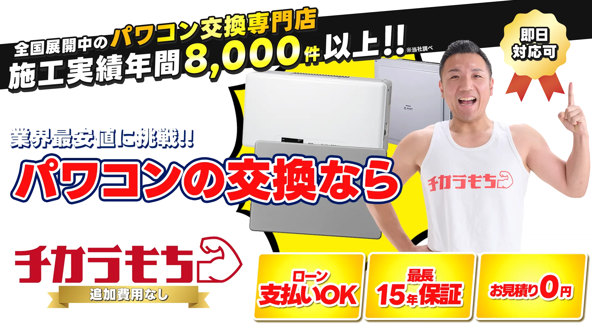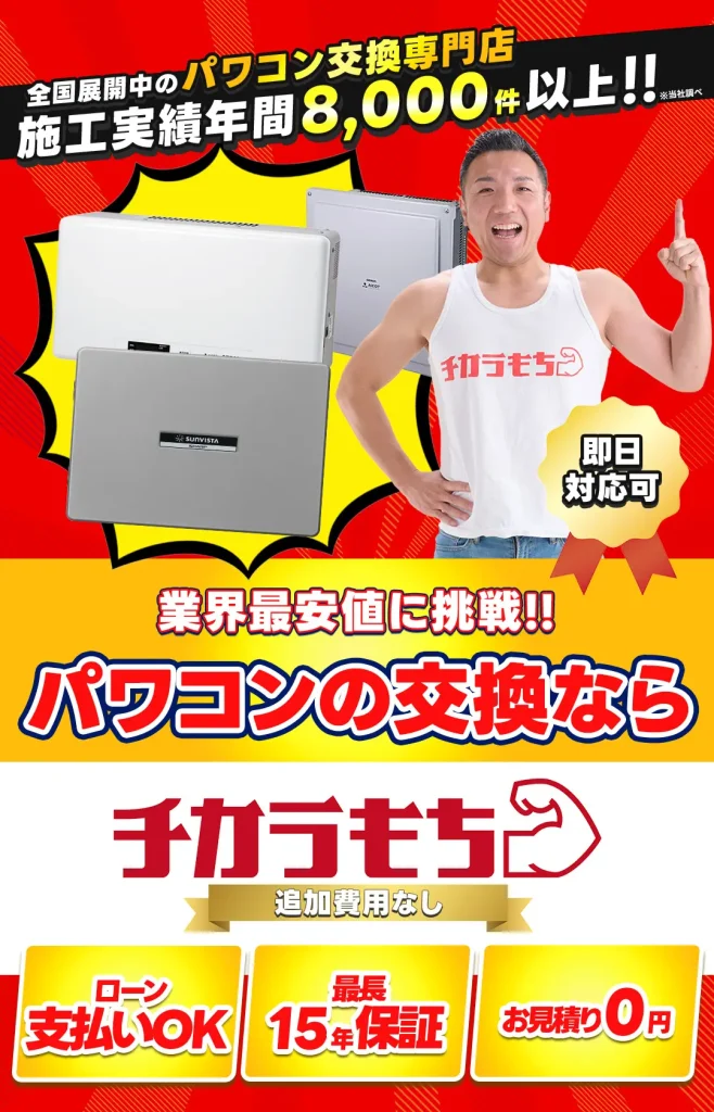 チカラもちでは交換したパワコンの工事に関する不具合を10年間無料保証いたします。